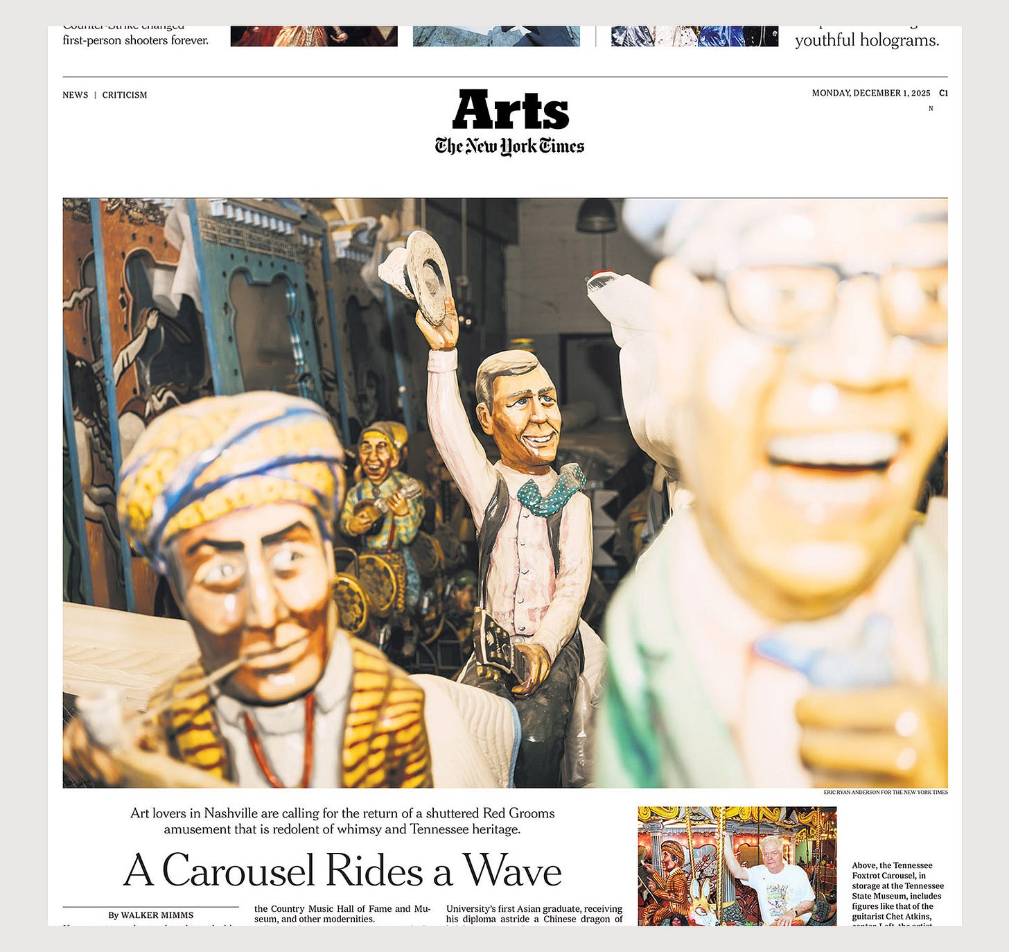 Walker’s story about the lost carousel, a booming city and an artist reflecting on another era finally ran last week and I highly recommend giving it a read! And the exhibition from Red Grooms is still up at David Lusk for a couple more weeks (closes December 20). If you’re in Nashville… Go check it out! And hopefully these pieces will be available for public admiration again soon!