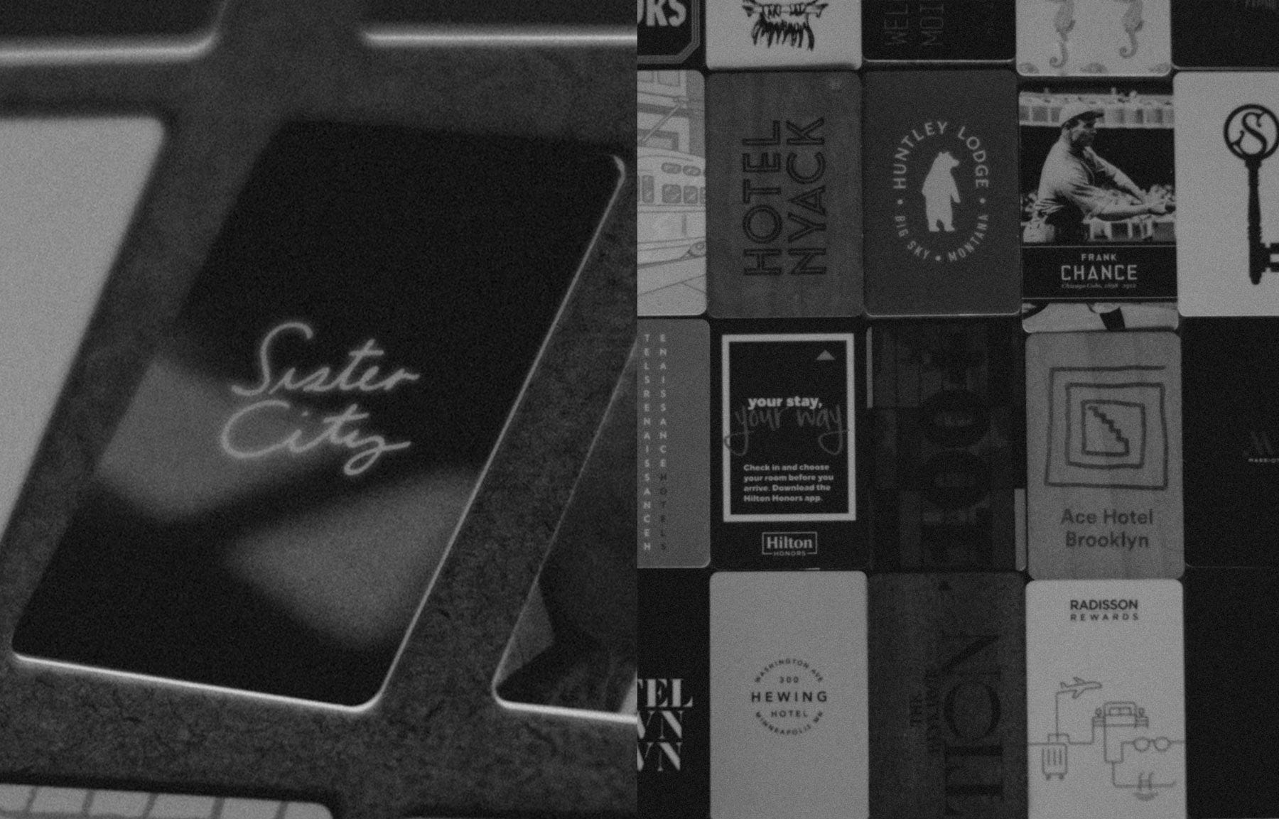 For a few years now, after returning from these trips, I empty my pockets and suitcases and usually one or two hotel key cards fall out. Instinctively, I throw them in a bedside drawer or in a box at the studio… And over the course of a few years, have built a stack of over two hundred of them.